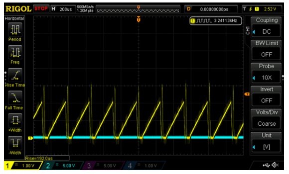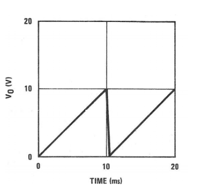 鋸齒形波形線性上升,周期性地回到零。這允許在被測器件上施加不斷增加的電壓,并在圖形上產(chǎn)生連續(xù)的跡線(在這種情況下是示波器)。