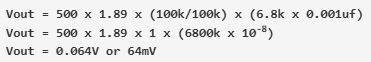 所以,當一個500赫茲的頻率應用在電路上時,電路將提供64毫伏的輸出。