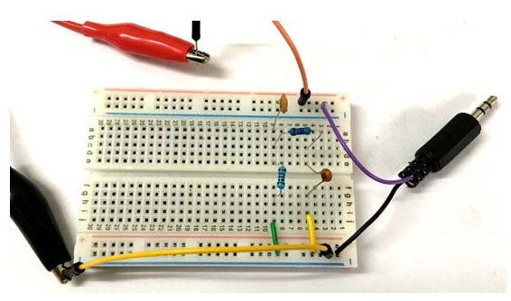 為了測試該電路,我們需要一個(gè)函數(shù)發(fā)生器來產(chǎn)生頻率可控的信號。因?yàn)槲覜]有,所以我決定用我的手機(jī),它有一個(gè)android應(yīng)用程序,可以通過我的3.5毫米耳機(jī)孔產(chǎn)生所需的頻率。這個(gè)信號然后作為輸入頻率給電路使用插孔如上所示。