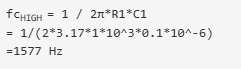 電路的前半部分是一個(gè)高通濾波器,它過濾低頻,只允許高于設(shè)定的高截止頻率(fcHIGH)的頻率。這個(gè)高截止頻率的值可以用公式計(jì)算