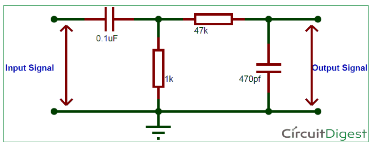 正如您所看到的,高通濾波器是使用電容器0.1uF (C1)和電阻1K (R1)構(gòu)建的。所以這個(gè)電路較高的截止頻率是