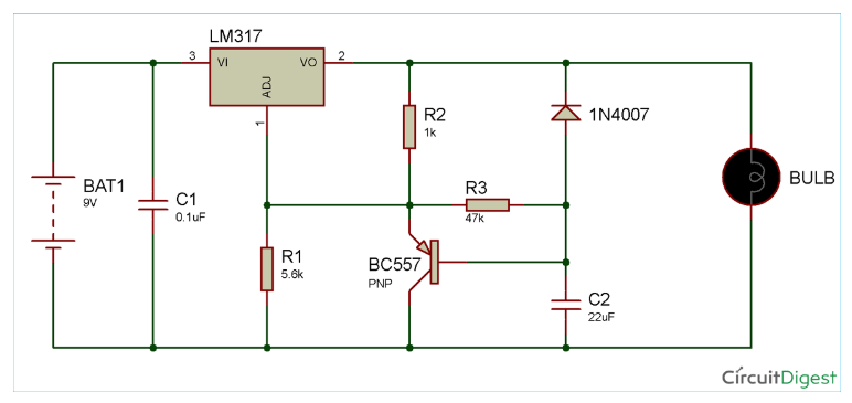 在這里,我們使用LM317,一種線性和正電壓調(diào)節(jié)器IC,當(dāng)它處于欠載或過熱狀態(tài)時,它會自動降低其輸出電流。