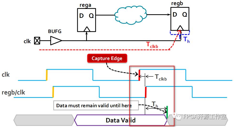 表明數(shù)據(jù)必須在時(shí)鐘捕獲沿(regb/clk)之后穩(wěn)定存在一段時(shí)間Th。
