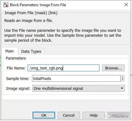 之后我們需要設(shè)置Image From File模塊,雙擊它。如下圖設(shè)置File Name,Sample time。