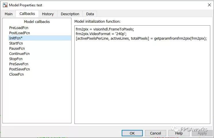 然后我們在Callbacks中的InitFcn(初始化函數(shù))填寫以下代碼,這樣我們只要改變VideoFormat的格式就可以自動獲取圖像長寬等參數(shù)。