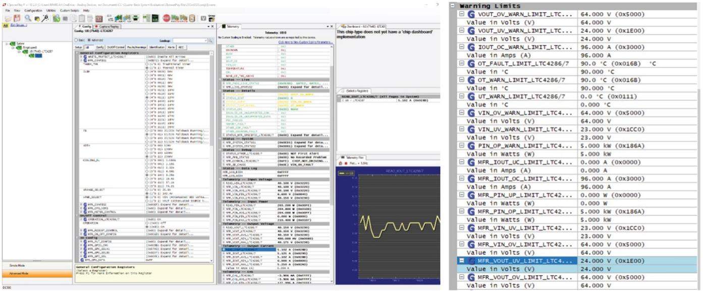 為了確保插入的PSU正常運(yùn)行,熱插拔控制器通過集成的PMBus®對輸出電壓和電流進(jìn)行實(shí)時(shí)監(jiān)測。監(jiān)測數(shù)據(jù)可傳輸至LTpowerPlay®進(jìn)行分析和評估。此監(jiān)測功能可以快速識(shí)別PSU行為中的任何異常,從而有助于快速響應(yīng)潛在問題。
