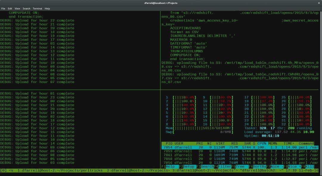 提供了強(qiáng)勁的、易于使用的命令行界面 可橫向和縱向分割窗口 窗格可以自由移動(dòng)和調(diào)整大小,或直接利用四個(gè)預(yù)設(shè)布局之一 可在多個(gè)緩沖區(qū)進(jìn)行復(fù)制和粘貼 可通過(guò)交互式菜單來(lái)選擇窗口、會(huì)話(huà)及客戶(hù)端 等等