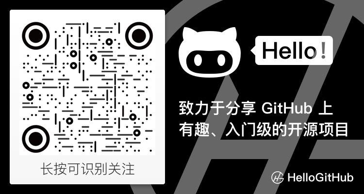 如果你發(fā)現(xiàn)了 GitHub 上有趣的項(xiàng)目,歡迎在 HelloGitHub 項(xiàng)目提 issues 告訴我們。