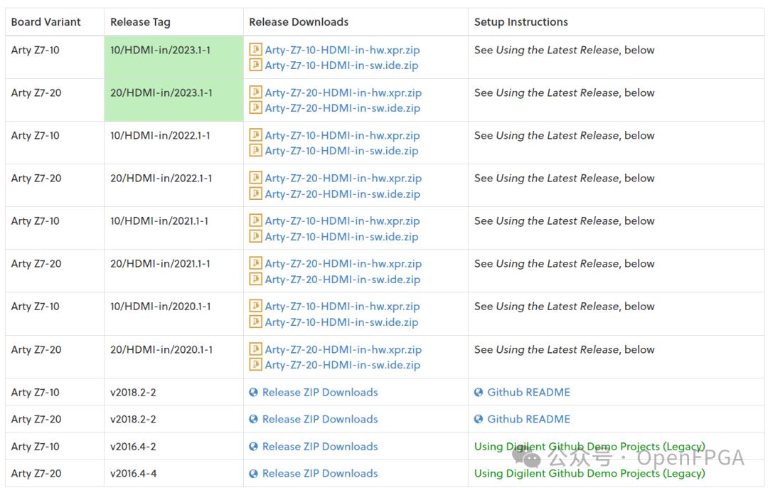 下載與主板和 Vivado 工具版本相關(guān)的硬件 (hw) 和軟件 (sw) zip 文件。