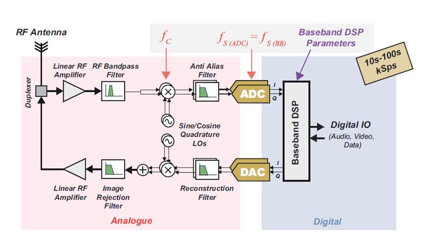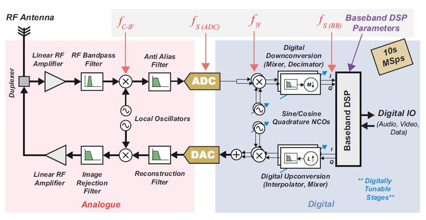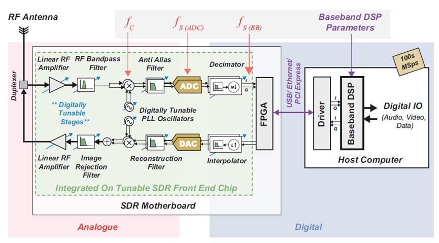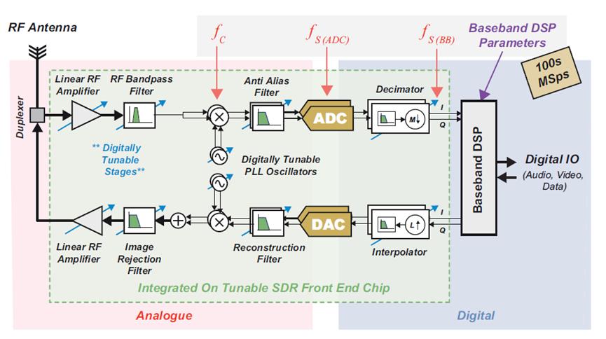 圖5:帶可調諧射頻的基帶采樣SDR的系統(tǒng)級實現(xiàn)