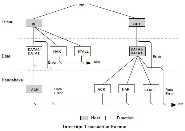 輸入事務處理:表示USB主機從總線上的某個USB設備接收一個數(shù)據(jù)包的過程。-