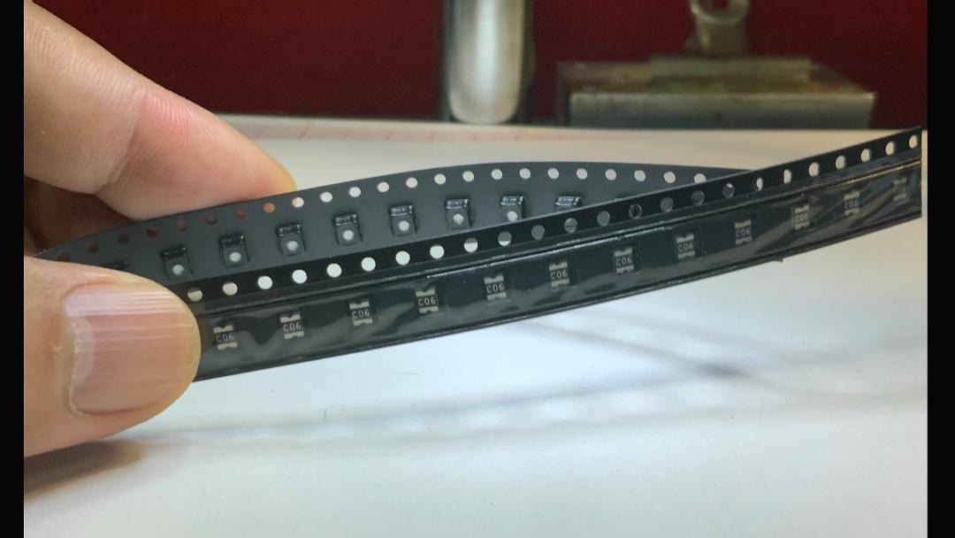 使用LCR 鑷子測量 C06的阻抗。平時的時候兩端是開路的。這是在靜止的狀態(tài)下,C06的導(dǎo)通狀態(tài)。下面將其焊接在電路板上,測量振動狀態(tài)下的導(dǎo)通情況。
