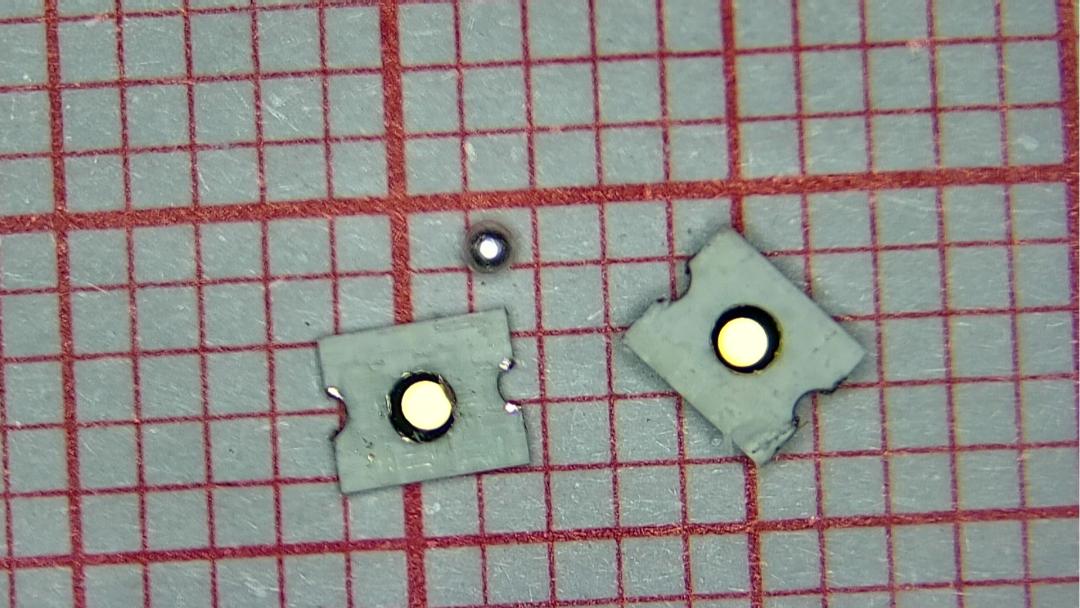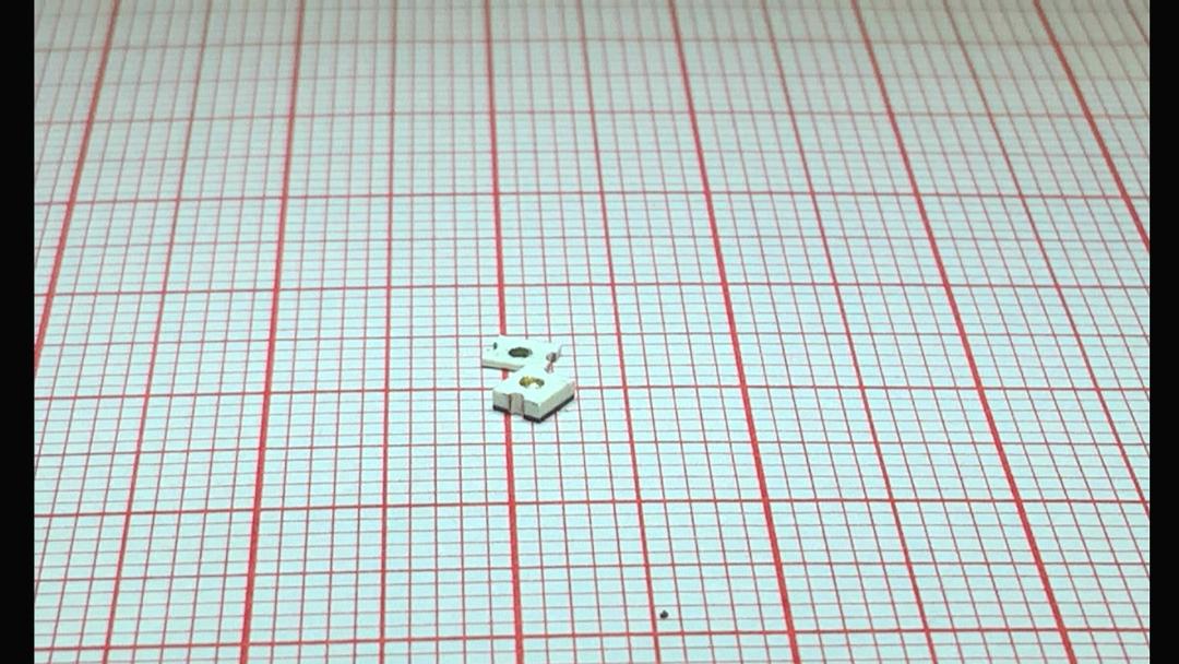 使用斜口鉗從側(cè)面打開C06,我們看到它上下分為兩部分,此外還有一個金屬小球。因此,金屬小球在內(nèi)部起到連接上下兩個金屬電極的作用。令人感到奇怪的是,為什么在靜止的時候,電極斷開,震動的時候電極短路。具體的原理現(xiàn)在還不得而知?;蛟S,在震動的時候,它的兩個電極是處在短路和連接交替狀態(tài)。