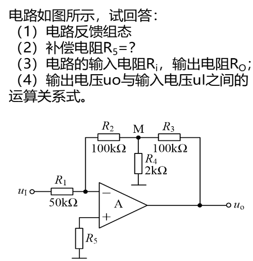 (3)因ip=0A,所以up=0V,所以un=0V(相當于接地,術(shù)語“虛地”);Ro 由于是電壓負反饋,電路具有穩(wěn)定電壓功能,所以Ro=0;