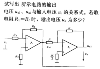 uo1=-Rf/R1*ui(反向比例運算);uo2=-R/R*uo1=-uo1(反向比例運算);