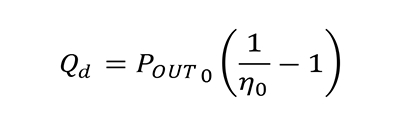 其中 Q d是耗散的熱量(以瓦為單位),P OUT是輸出功率(以瓦為單位),η 是效率。 P OUT和 η 在等式 1 中用類似的下標(biāo)表示,以明確運(yùn)行效率隨輸出 (O) 功率變化而不僅僅是某個固定值。