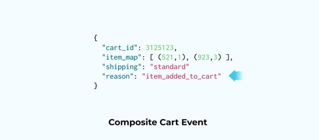 從事實(shí)事件開始,您可以添加有關(guān)創(chuàng)建該事件的原因的信息。在下面的示例中,我們將“item_added_to_cart”事件創(chuàng)建的原因包括在內(nèi)(盡管您也可以根據(jù)自己的狀態(tài)自行推斷)。