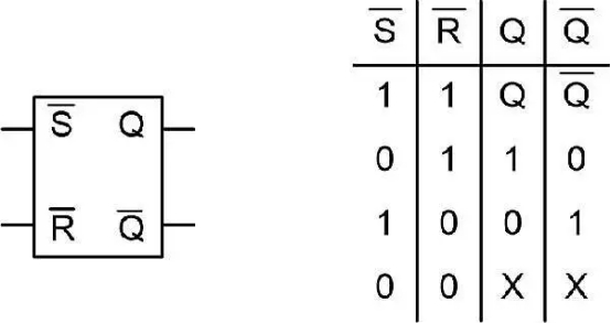 圖 2具有低電平有效輸入的 SR 鎖存器和相應(yīng)的真值表