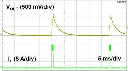 一種流行的故障響應(yīng)方式稱為打嗝。電源轉(zhuǎn)換器將自行關(guān)閉,等待一段時(shí)間(例如 30 ms),然后自動(dòng)重新啟動(dòng)。圖 1 顯示了此響應(yīng)的示例,同時(shí)測(cè)量輸出電壓和電感器電流。打嗝式故障響應(yīng)使系統(tǒng)有機(jī)會(huì)在沒(méi)有外部干預(yù)的情況下恢復(fù)。它還有助于減少輸出短路時(shí)消耗的功率和產(chǎn)生的熱量。