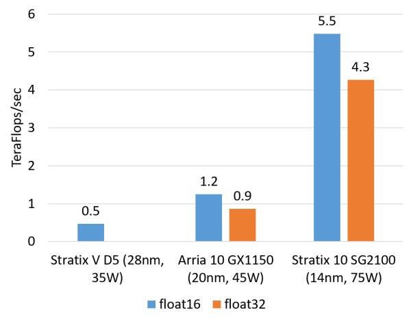 FPGA 的浮點(diǎn)乘法運(yùn)算能力(估計(jì)值,float16 用軟核,float 32 用硬核) 。
