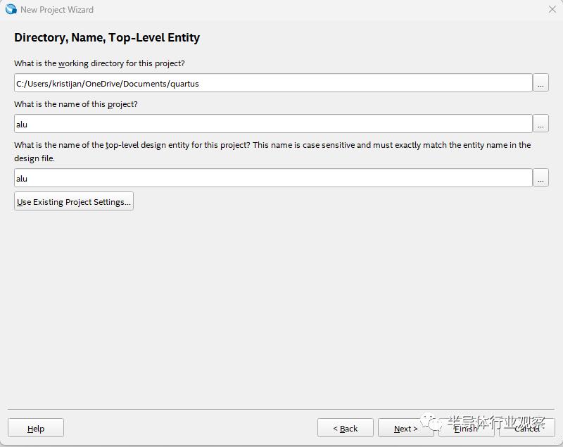 如圖 4 所示,在名為“目錄、名稱、頂級(jí)實(shí)體”的第二個(gè)屏幕上,我們需要選擇之前創(chuàng)建的文件夾作為工作目錄,并為當(dāng)前項(xiàng)目指定適當(dāng)?shù)拿Q。我將這個(gè)項(xiàng)目命名為“ALU”。