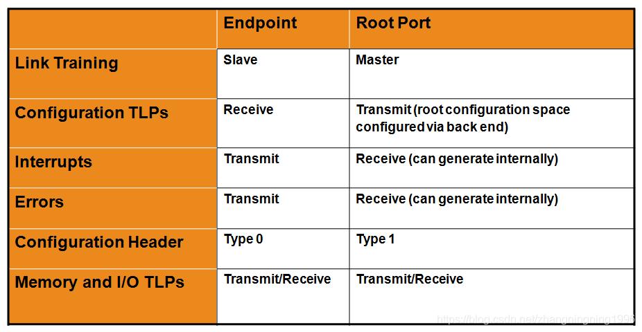 root port與endpoint也有許多不同點。root port使用Type 1配置頭空間。endpoint使用Type 0配置頭空間。兩者主要的區(qū)別如下:
