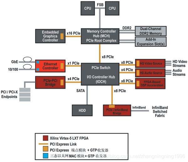 計算機體系結(jié)構(gòu)中PCIe的應(yīng)用架構(gòu)如下: