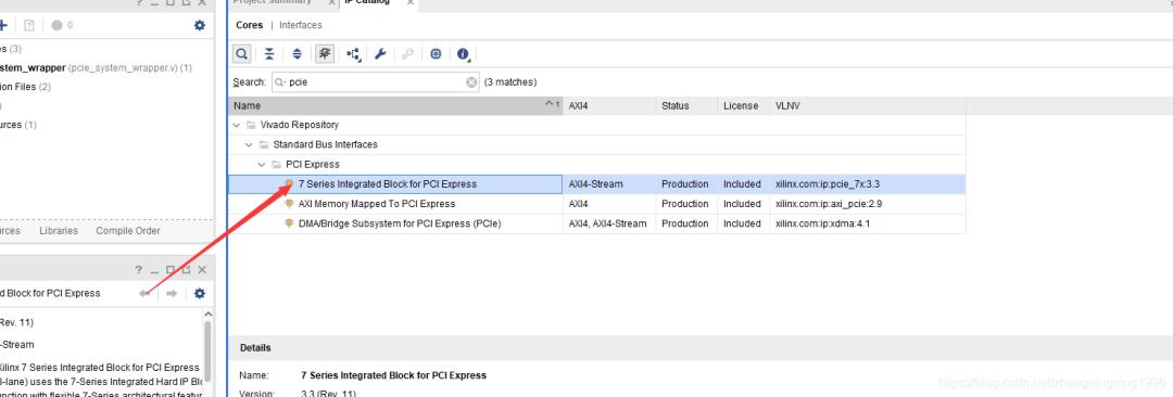 這里簡單介紹一下PCIE核配置過程中的注意點,這次我們先不使用XDMA IP,使用下面的PCIE IP: