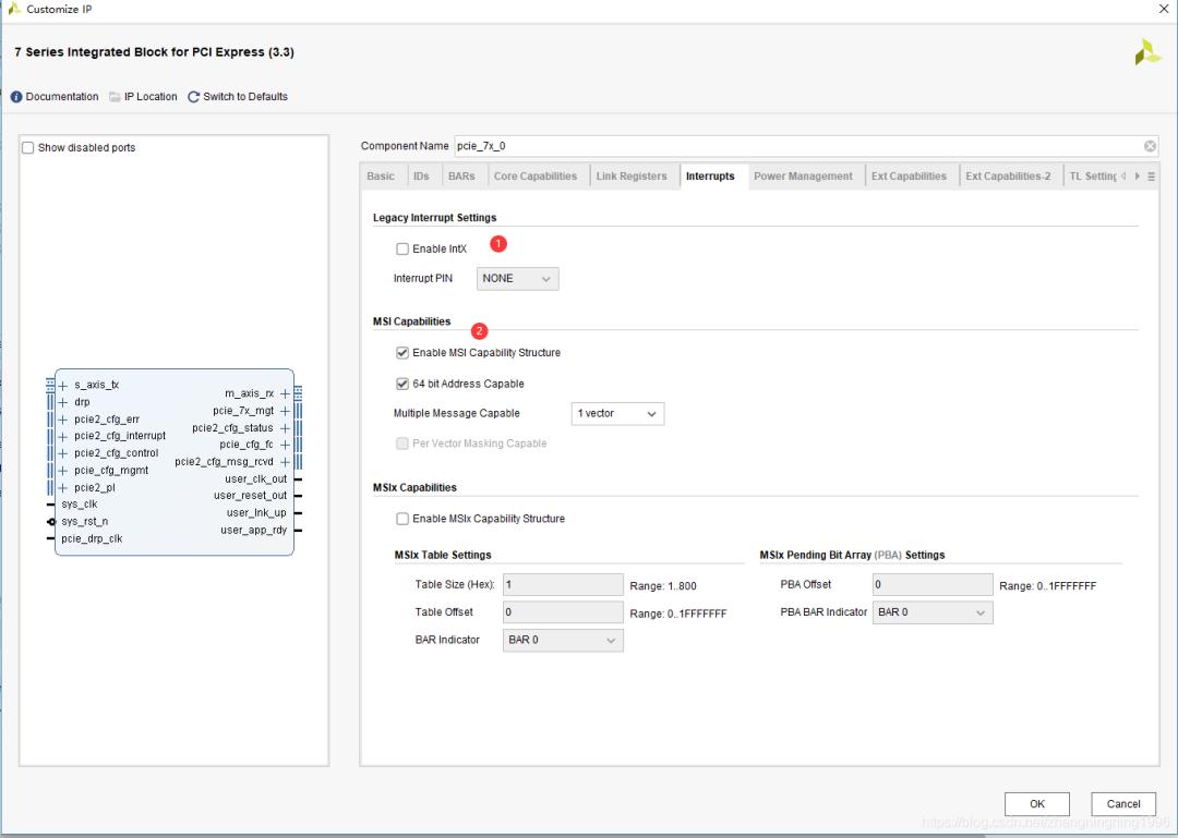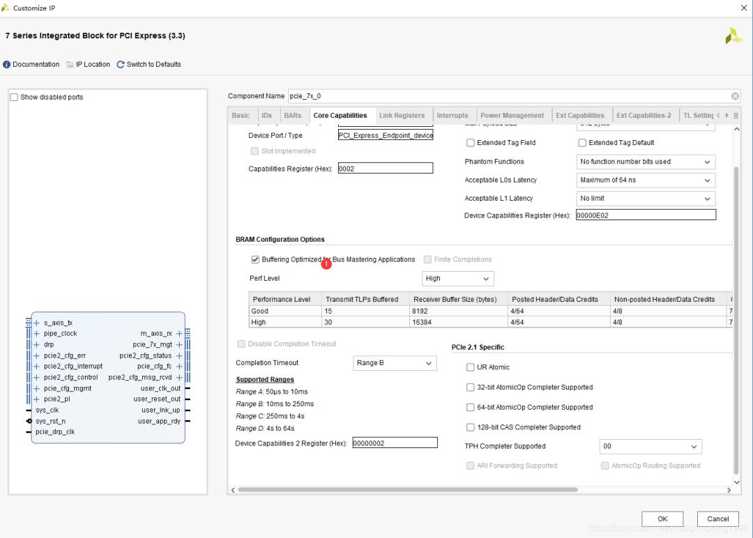 PCIE IP核配置需要的注意點