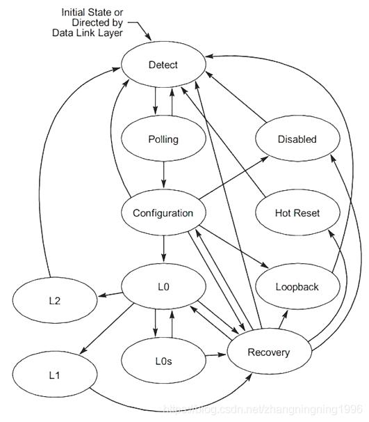 LTSSM狀態(tài)機。LTSSM全稱是Link Training and Status State Machine。這個狀態(tài)機在PCIe總線的物理層之中。狀態(tài)轉(zhuǎn)移圖如下: