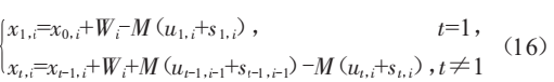 式中:xt,i為t時段、第i個水電機組對應的水庫容量;x0,i為第i個水電機組對應的初始水庫容量;Wi為第i個水電機組對應水庫自然流入量;M為從機組流量轉化為水庫容量的系數(shù),M=0.0036 Hm3 ?s/m3 ;ut,i為t時段、第i個水電機組的排水流量;st,i為t時段、第i個水電機組對應水庫的滲流量。