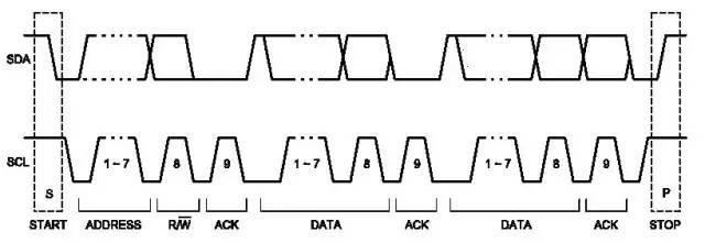 開(kāi)始信號(hào):當(dāng)時(shí)鐘總線SCL為高電平時(shí),數(shù)據(jù)線SDA由高電平向低電平跳變,開(kāi)始傳送數(shù)據(jù)。