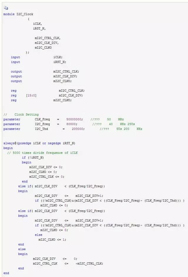 FPGA作為IIC器件的主機(jī),要產(chǎn)生IIC的工作時(shí)鐘,下面先對(duì)IIC所需的時(shí)鐘信號(hào)進(jìn)行仿真。