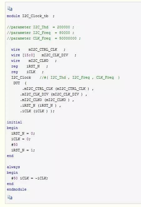 待仿真的時(shí)鐘信號(hào)程序如下: