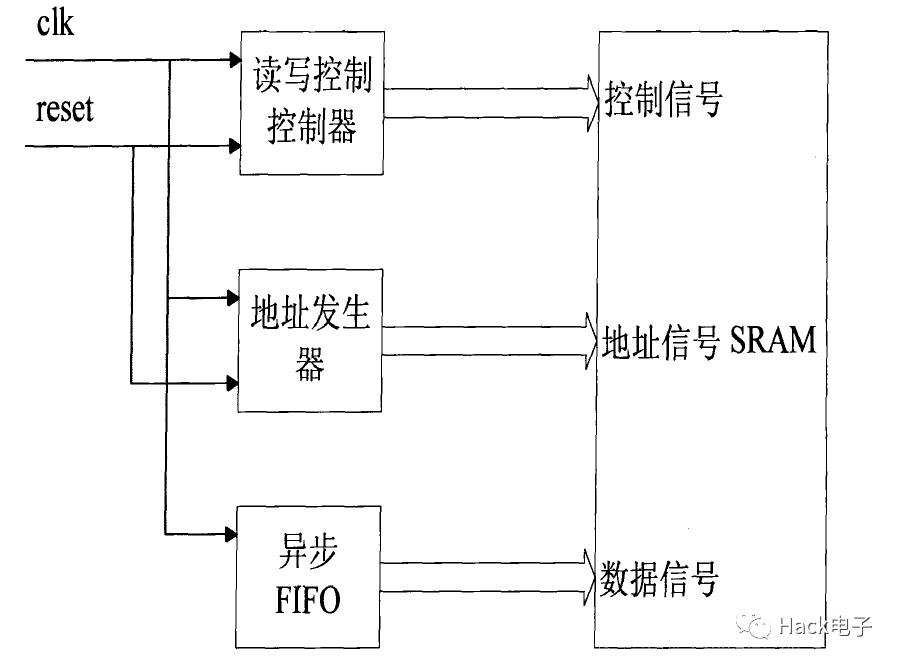 內(nèi)部控制器controller根據(jù)異步FIFO的滿空狀態(tài)來使能SRAM控制器,當(dāng)FIFO滿狀態(tài)有效空狀態(tài)無效時(shí),SRAM開始從FIFO中讀取數(shù)據(jù)。