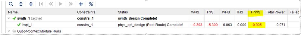 如需了解脈沖寬度違例的詳情,請參閱“報告時序匯總”(Report Timing Summary) 的“TPWS”部分。