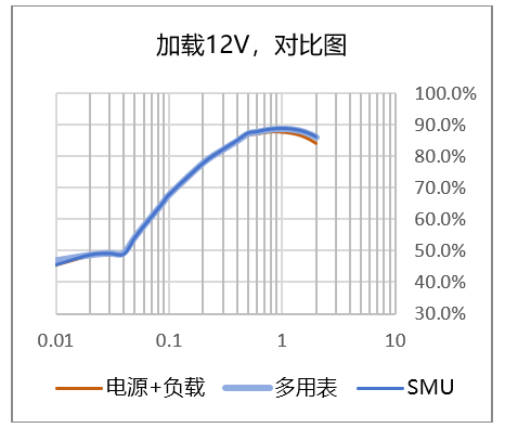 圖4 使用不同方式,加載12V電壓;圖5 使用SMU測試效率,加載不同輸入電壓*