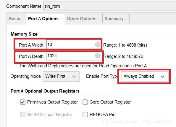 配置要存入的數(shù)據(jù)位寬和數(shù)據(jù)深度,我之前生成的是位寬10位,深度1024的數(shù)據(jù)