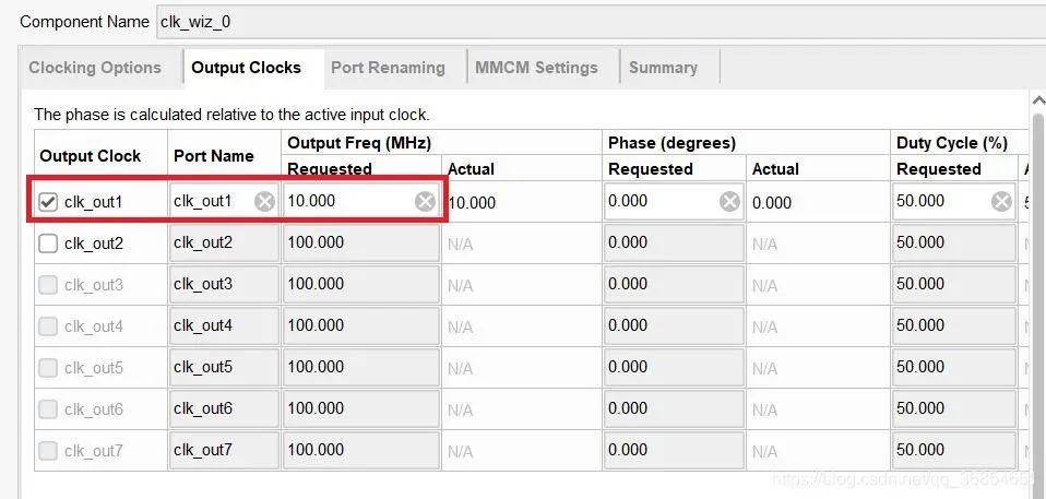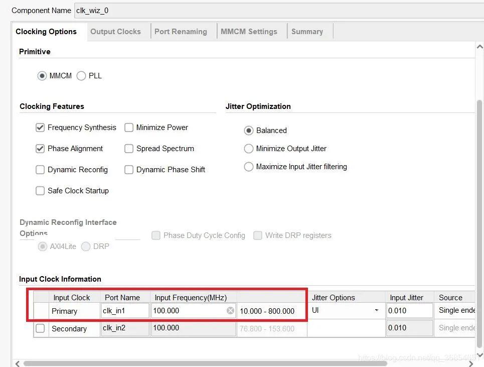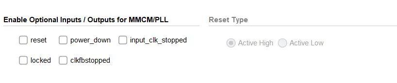 在最下方可選擇IP核需要的引腳,我都沒用到,因此全取消了(之前有遇到選擇reset和lock引腳后IP核不能使用的情況,原因還未弄清楚)。
