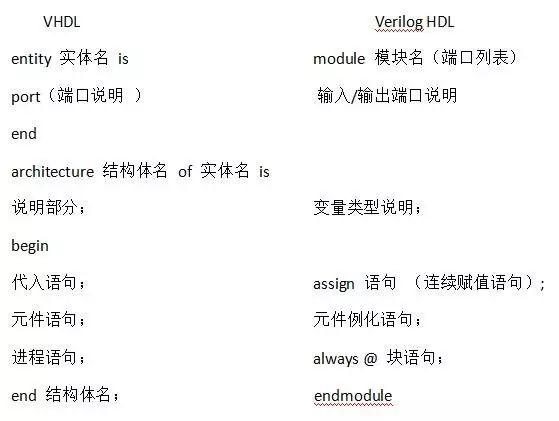 兩者結(jié)構(gòu)基本相似,并行語句的種類也類似;VHDL語言需要進(jìn)行大量說明,程序通常比較長(zhǎng);Verilog HDL通常不進(jìn)行說明,或只進(jìn)行非常簡(jiǎn)短的說明,程序比較簡(jiǎn)短。