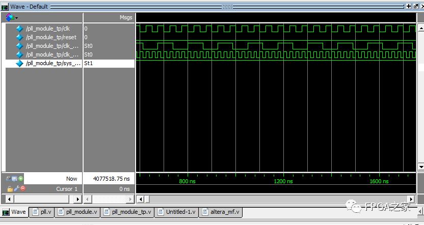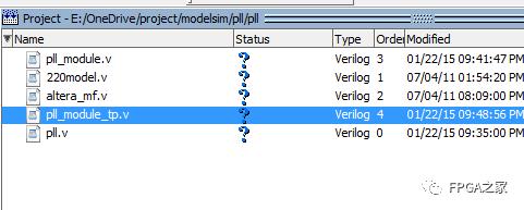 這樣,modesim工作目錄中除了pll.v, pll_module.v, pll_module_tp文件外,還需加入alter仿真庫(kù)文件(如果modesim軟件添加過alter庫(kù),這不需要)