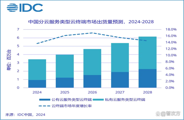 國際數(shù)據(jù)公司(IDC)最新發(fā)布的《2024年上半年中國云終端市場跟蹤報告》顯示,2024上半年中國云終端市場出貨量達到166.3萬臺,同比增長22.4%。IDC預計,2024至2028年,中國整體云終端市場規(guī)模有望超過615萬臺,五年復合增長率將達到15.8%。通俗來講,商業(yè)模式和產(chǎn)業(yè)鏈條已經(jīng)打通,最終用戶以相對更加低廉的價格擁有云終端設備即“云電腦”服務。