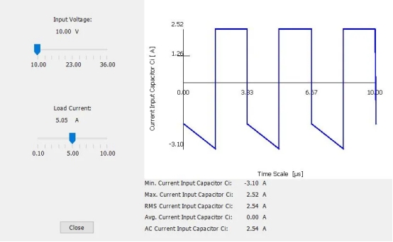 要正確指定降壓 DC/DC 轉(zhuǎn)換器的輸入電容器,您必須了解電容器中的 RMS 電流。您可以根據(jù)方程式估算電流,或者更簡單地使用 TI 的 Power Stage Designer 等軟件工具來估算電流。您還可以使用此工具來估計最多三個并聯(lián)輸入電容器支路的電流,如實際轉(zhuǎn)換器設(shè)計中常用的那樣。