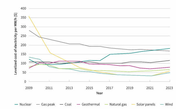 如今,可再生能源發(fā)電約占全球電力生產(chǎn)的30%。在STEPS情景中,這一比例預(yù)計(jì)將提高到70%,在NZE情景中,將提高到89%[2]。近年來(lái),低碳化的努力已經(jīng)初顯成效——在過(guò)去15年,可再生能源已從最昂貴的能源變?yōu)樽罱?jīng)濟(jì)的選擇[3]。