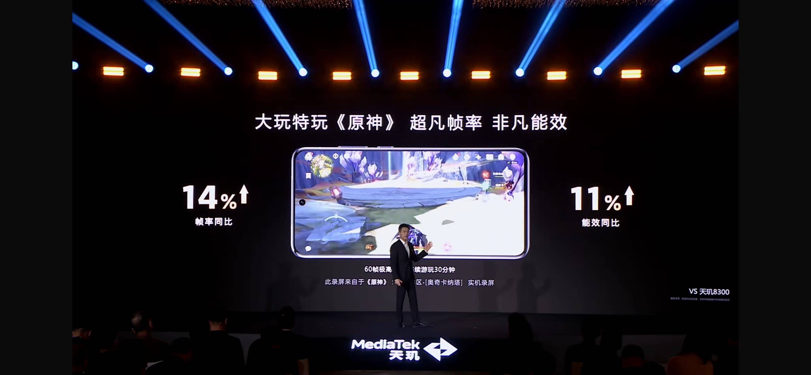 接著再看《原神》,30 分鐘60 幀極高畫質(zhì),搭載天璣 8400 幀率同比上一代提升 14%,能效提升 11%,做到了既有高性能,又有長(zhǎng)續(xù)航。