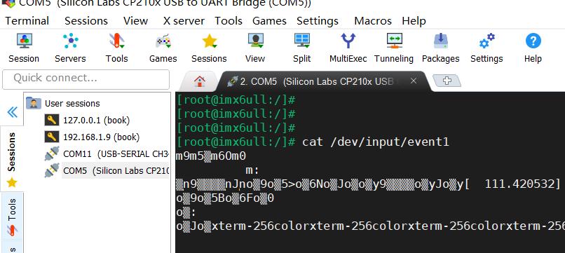 此時(shí),觸摸一下屏幕,則終端會有信息(亂碼信息)輸出,則說明當(dāng)前板子的觸摸輸入對應(yīng)的就是這個(gè)event。