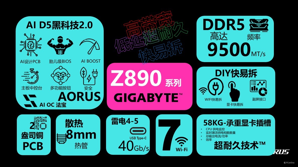 技嘉就更不必多說(shuō),D5黑科技早已聞名DIY硬件圈,此次Z890系列帶來(lái)D5黑科技2.0,通過(guò)全面調(diào)教軟件、硬件和固件,將DDR5內(nèi)存速度提升至9500+ MT/s。