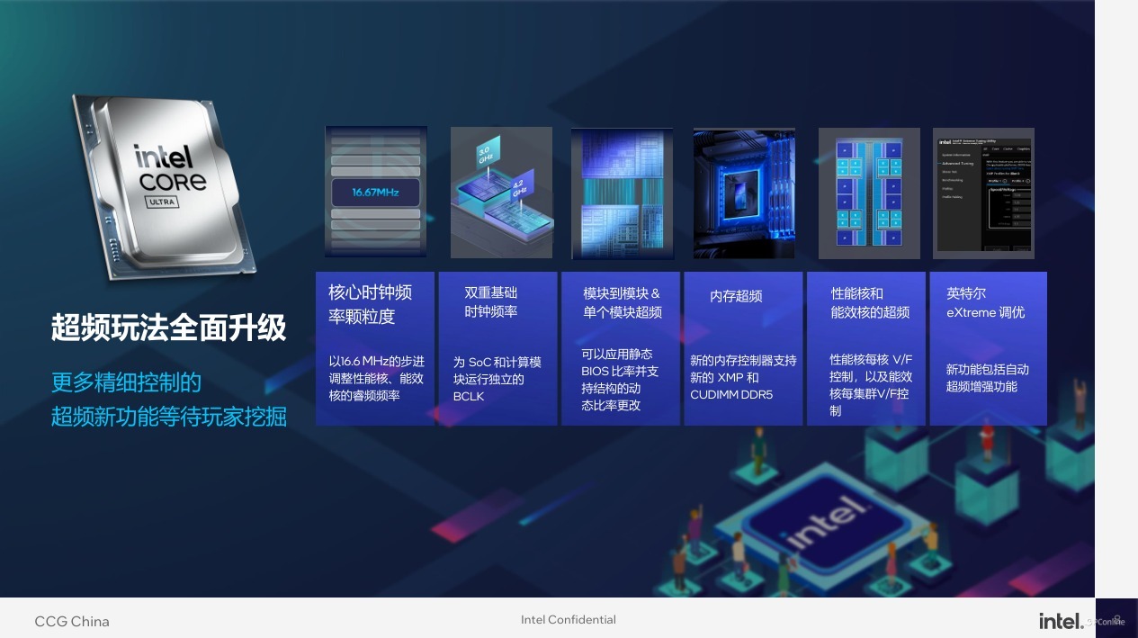 后續(xù)Intel也介紹了酷睿Ultra 200S系列在超頻方面的可玩性還是非常多的,這也是不少玩家所忽視的地方,除了上面提到的各大板廠支持AI超頻外,Intel針對(duì)玩家也提供了不少超頻玩法。