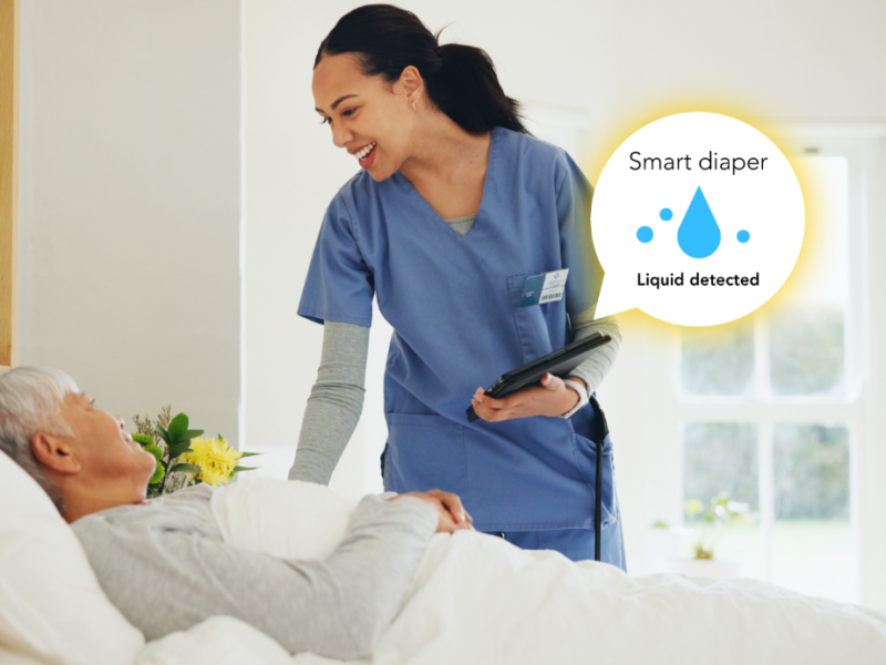 該技術(shù)將尿液中的水分作為電解液,將尿布里安裝的兩種導(dǎo)電性材料作為正負(fù)極,從而充當(dāng)電池。對從中產(chǎn)生的300mV左右的微弱電壓進(jìn)行升壓,讀取水份量,驅(qū)動(dòng)系統(tǒng),使用Bluetooth® Low Energy(BLE)傳輸IC(AK1595A)進(jìn)行通信,提示是否排尿以及尿布的吸水量。設(shè)備和尿布可輕松連接和斷開,以便干凈地重復(fù)使用。這使得在護(hù)理嬰幼兒和老年人時(shí)檢測排尿成為可能,有助于保持清潔并減輕護(hù)理和被護(hù)理雙方的身心負(fù)擔(dān)。