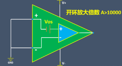 這是為什么呢?這就是因?yàn)檫\(yùn)放輸入端是存在很小的失調(diào)電壓,一般記作VIS或者VIO,運(yùn)放的失調(diào)電壓可以理解成同相端串聯(lián)了一個(gè)很小的電壓源,這個(gè)電源的電壓值其實(shí)就是運(yùn)放的失調(diào)電壓,這個(gè)電源的值可能是正也可能是負(fù),當(dāng)然失調(diào)電壓很小。